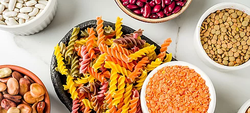 The pea protein isolate Empro E 86 by our partner Emsland Group is a vegetable raw material obtained from yellow peas (Pisum sativum) with highly functional and valuable nutritional–physiological properties.
